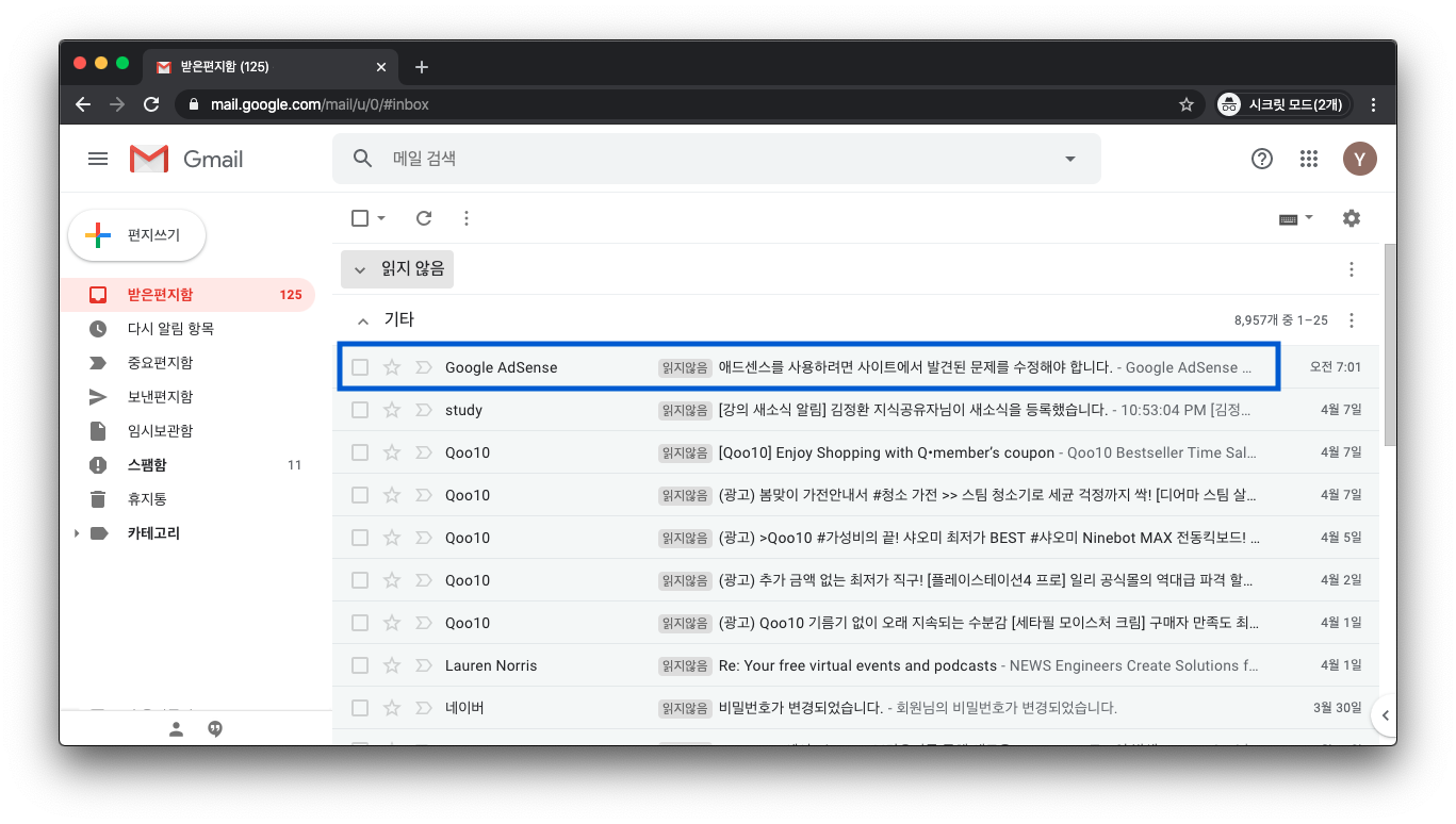 제목부터 승인 이메일이 아닌것을 알 수 있었습니다.